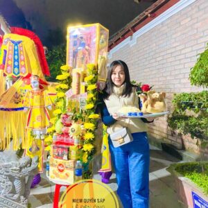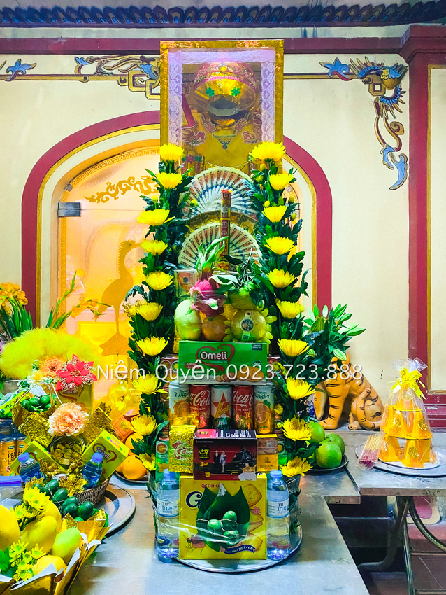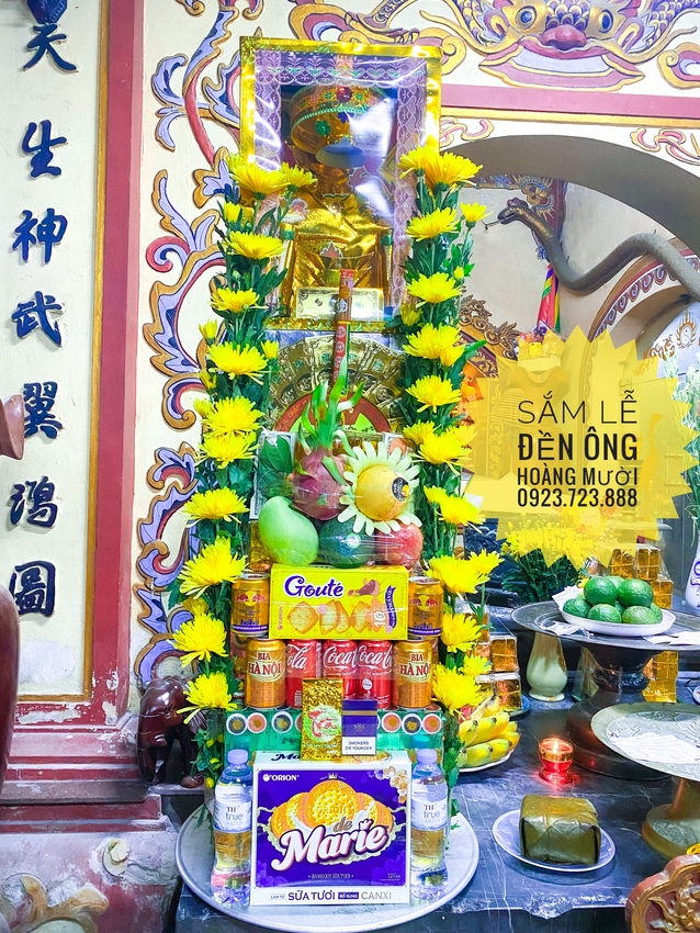 Bộ Lễ gồm có 1 mâm lễ vàng hộp đầy đủ bánh kẹo, hoa quả, bia nước, trầu cau, 20 bông hoa cúc kết đẹp